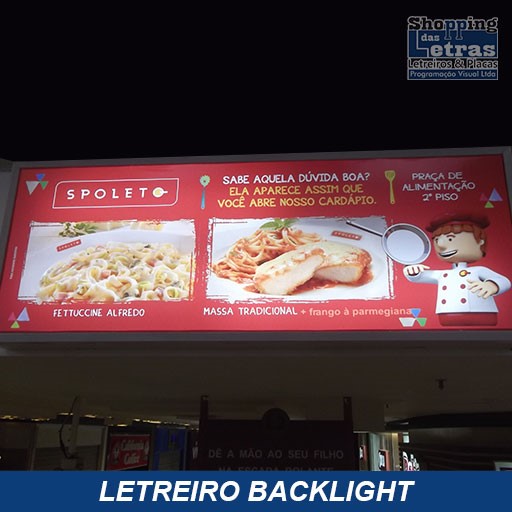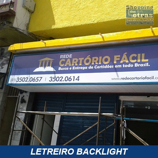 Letreiros tipo back light ( luz Externa ) confeccionado em estrutura metálico de metalon 20×20, 30×20, revestido de chapa galvanizada bitola 26, face de lona branca translucida da 3M com impressão digital de alta resolução com 16 passadas ou adesivos vinil de recorte eletrônico trânslúcido ( plotter ) iluminação a base de lampadas Fluorescentes, com reatores duplo de partida rápida ou led´s. caixa e acabamento pintado com tinta automotiva.