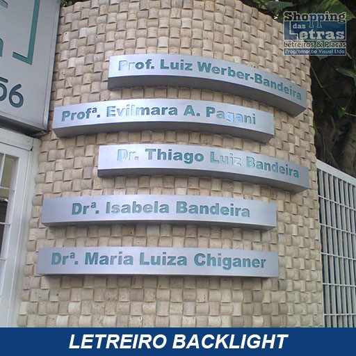 Letreiros de empresas, letreiros de condomínio, letreiros de igrejas, letreiros de hospital, letreiros de firmas, letreiros de colégio, letreiros de shoppings, letreiros de galpões, letreiros de recepção de empresas, letreiros de hall de elevador e outros.