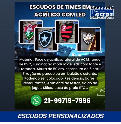 fazemos qualquer modelo de escudo de times e logomarcas personalizadas no mesmo material.