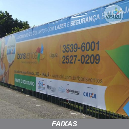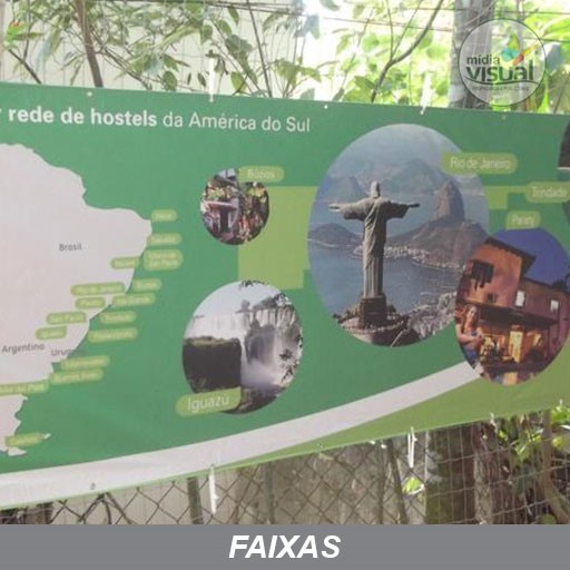 Impressão digital: em lona de grande formato de 3,20 Mts, com acabamento de ilhós com reforço de corda