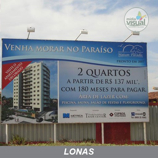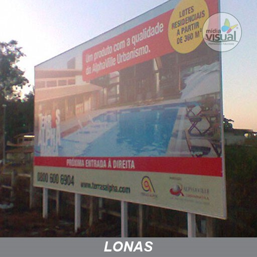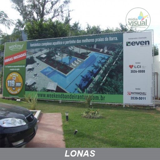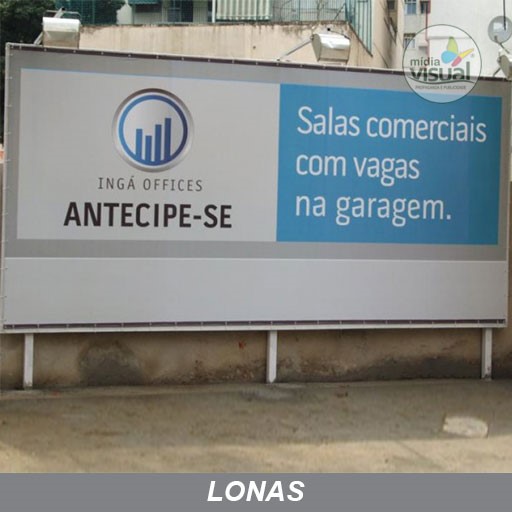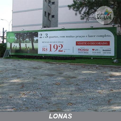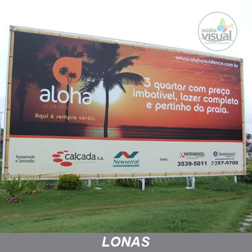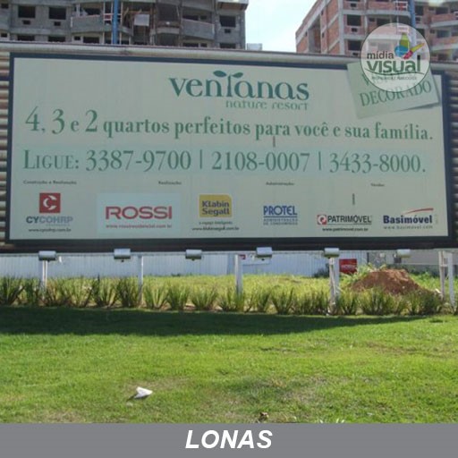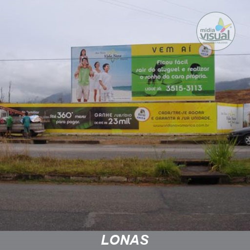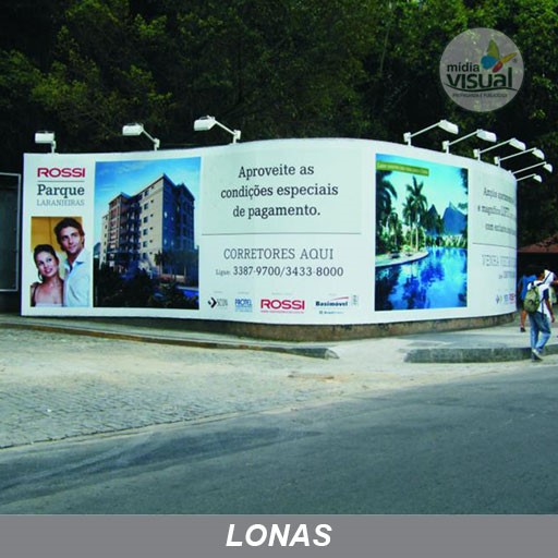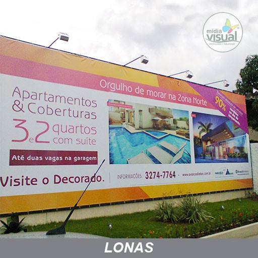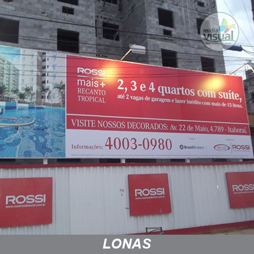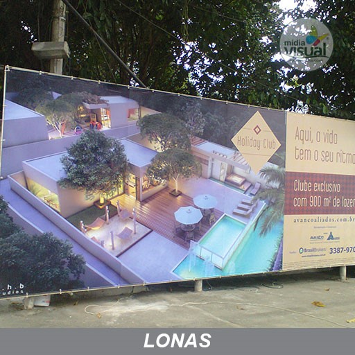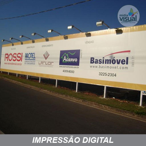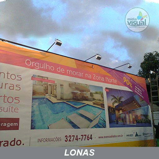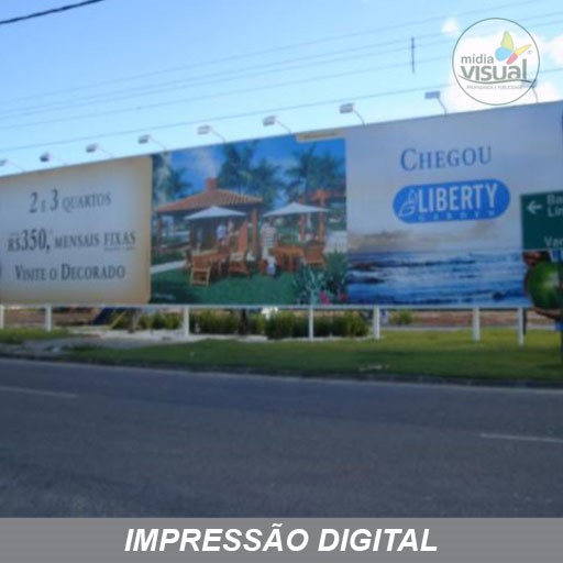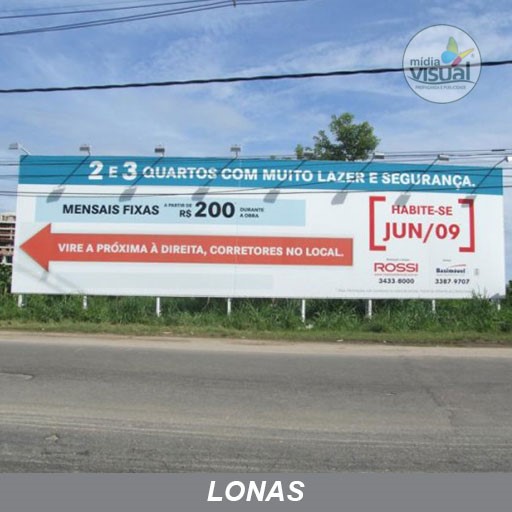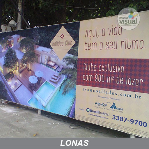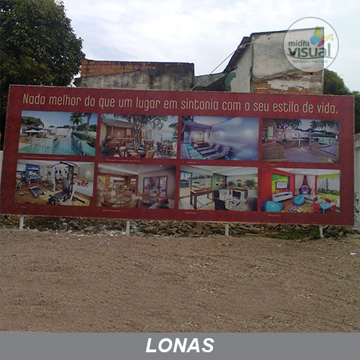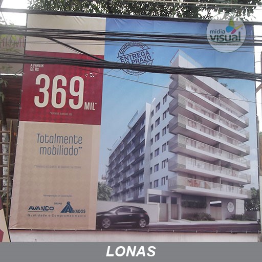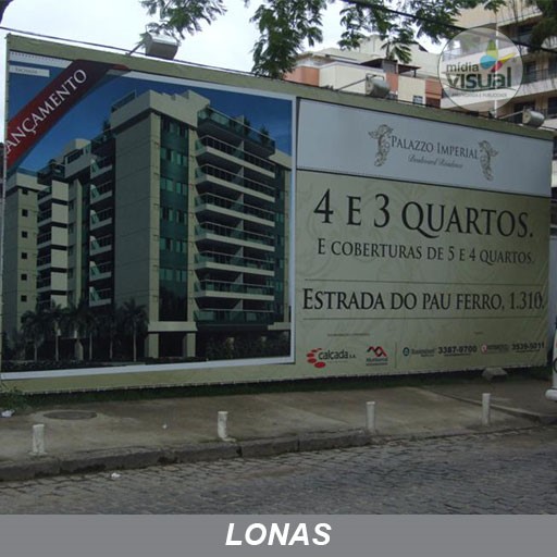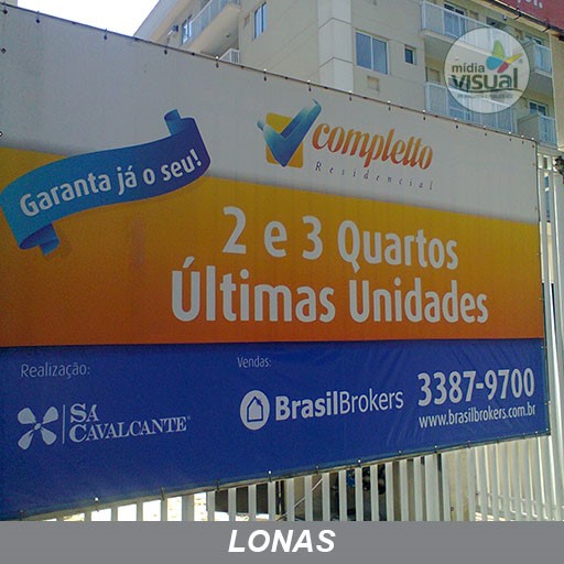 Impressão digital: em lona de grande formato de 3,20 Mts, com acabamento de ilhós com reforço de corda