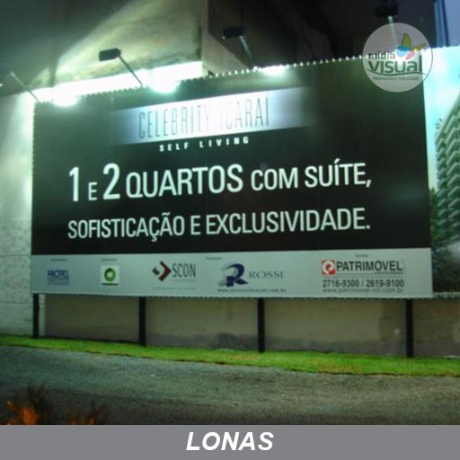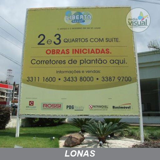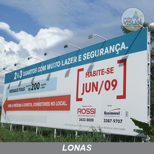 Materiais: Lonas, adesivos, banners, bandeiras, PVC, PS e outros