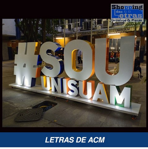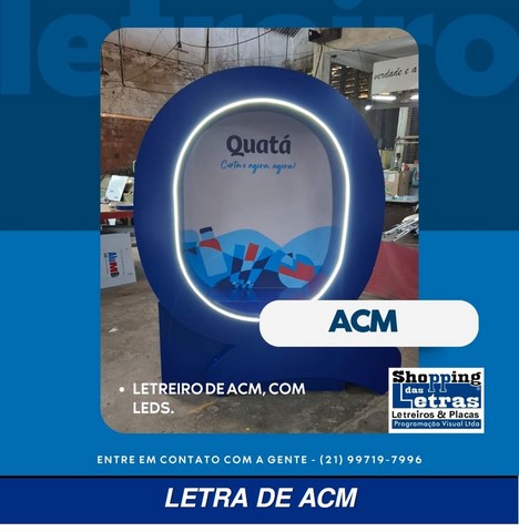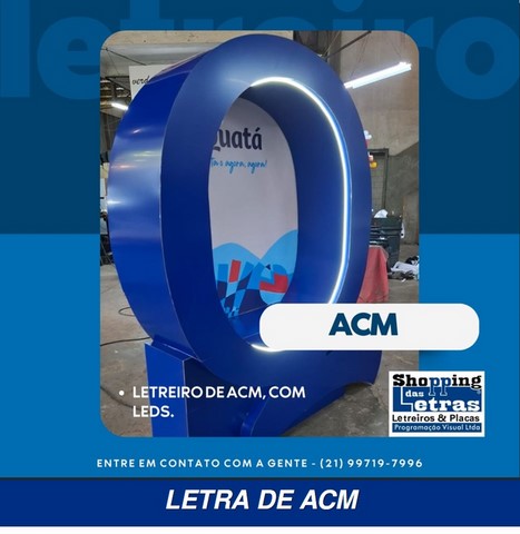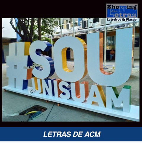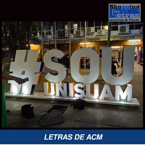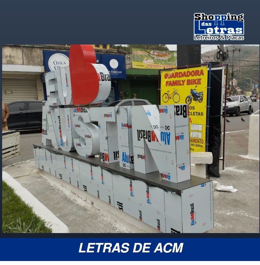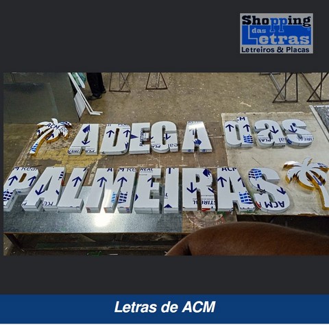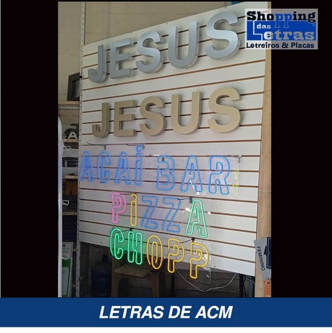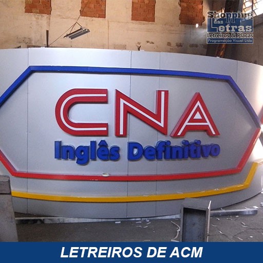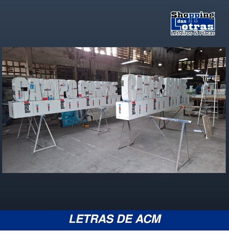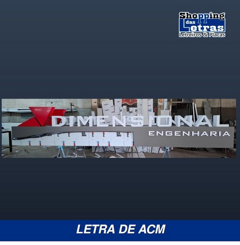 Na fabricação de letreiros no mundo atual, usamos o que há de mais moderno e com grande qualidade e durabilidade, para que a sua fachada de loja, revestimento da fachada ou um simples fundo de letreiro feito de ACM, moderno material, muito resistente ao tempo, fabricado em alumínio composto de dois lado com um composto de plástico rígido, em várias cores para sua escolha.