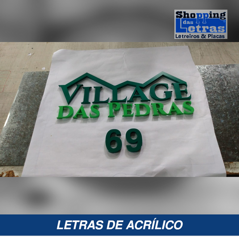 Letras em acrílico confeccionadas a base de recorte a laser, lateral ( espessura ) de acordo com o tamanho das letras, fixação a base de pinos central, orelhas com ou sem afastamento, base para colar com fita dupla face ou cola especial.