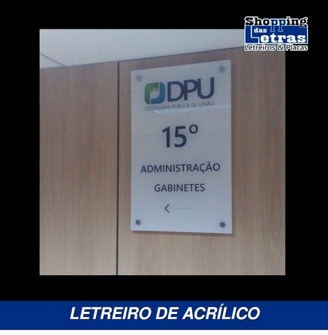 Letreiros de empresas, letreiros de condomínio, letreiros de igrejas, letreiros de hospital, letreiros de firmas, letreiros de colégio, letreiros de shoppings, letreiros de galpões, letreiros de recepção de empresas, letreiros de hall de elevador e outros.